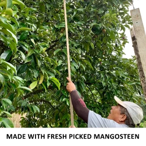 A naturally cultured enzyme drink made from whole mangosteen fruit. Rich in antioxidants, fermented with care, refreshing in every sip.
